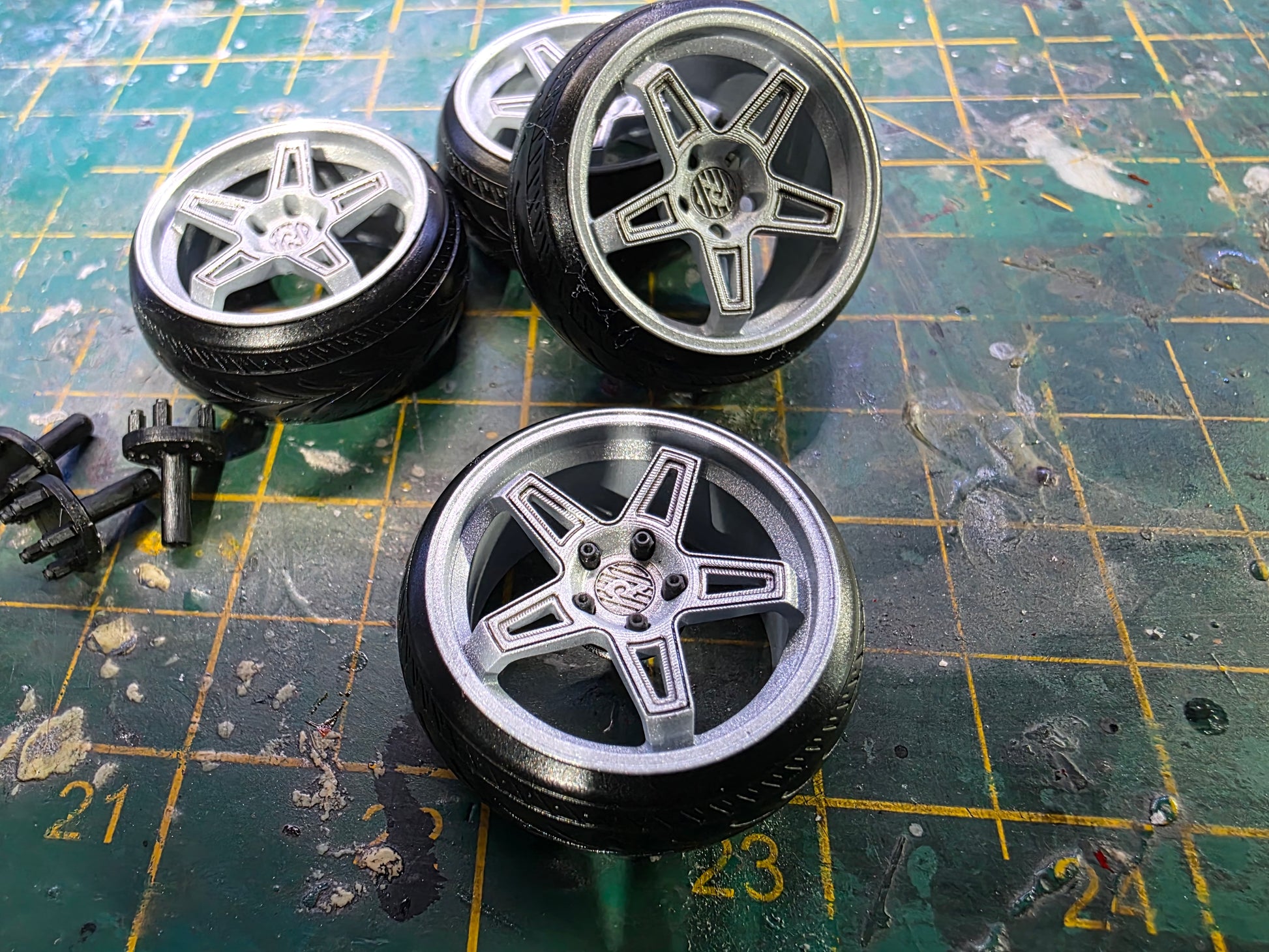 1/18 scale Power Wheel MS013 Painted in Gloss Silver and using our Stretched Tyres