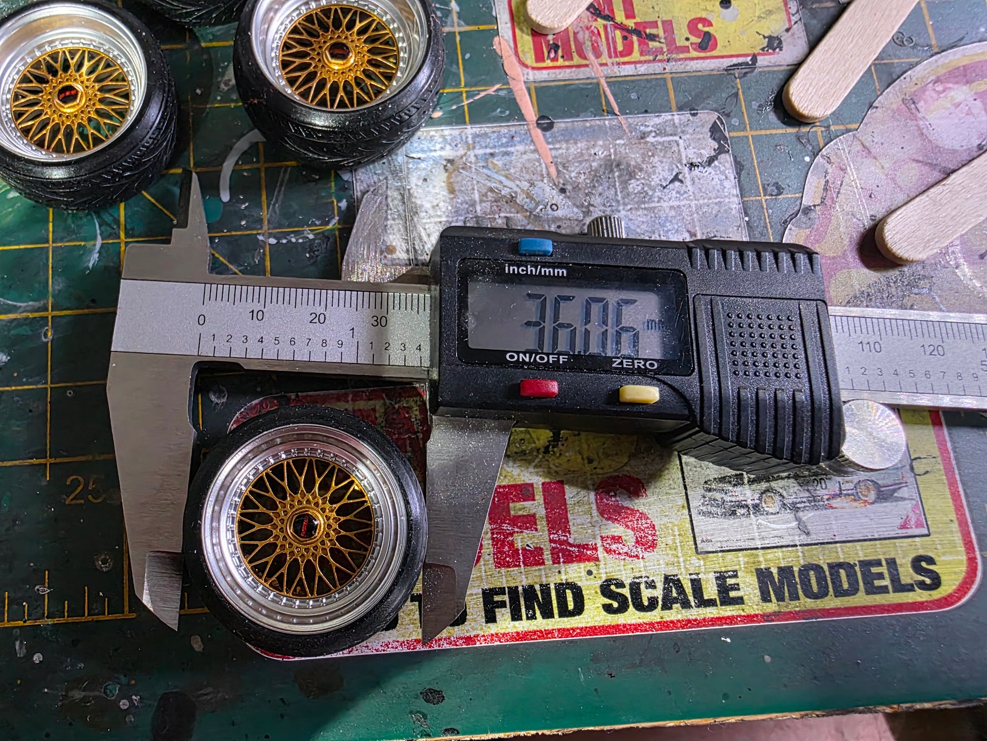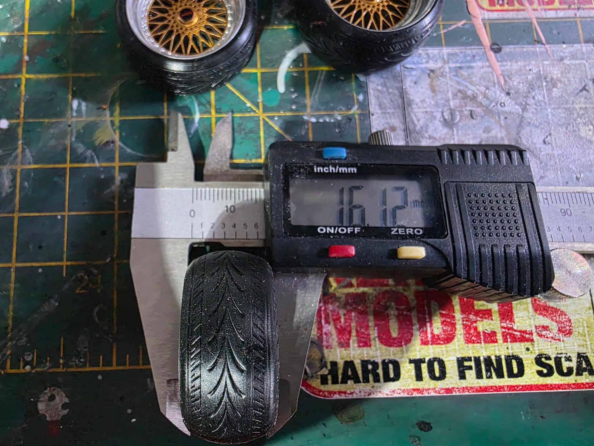 1/18 scale BBS RS Painted in Rich Gold and Chrome barrels with our Stretched Rubber Tyres