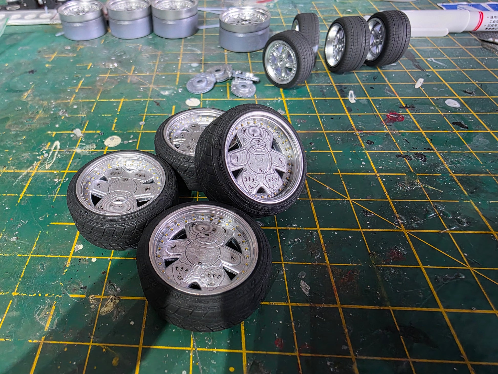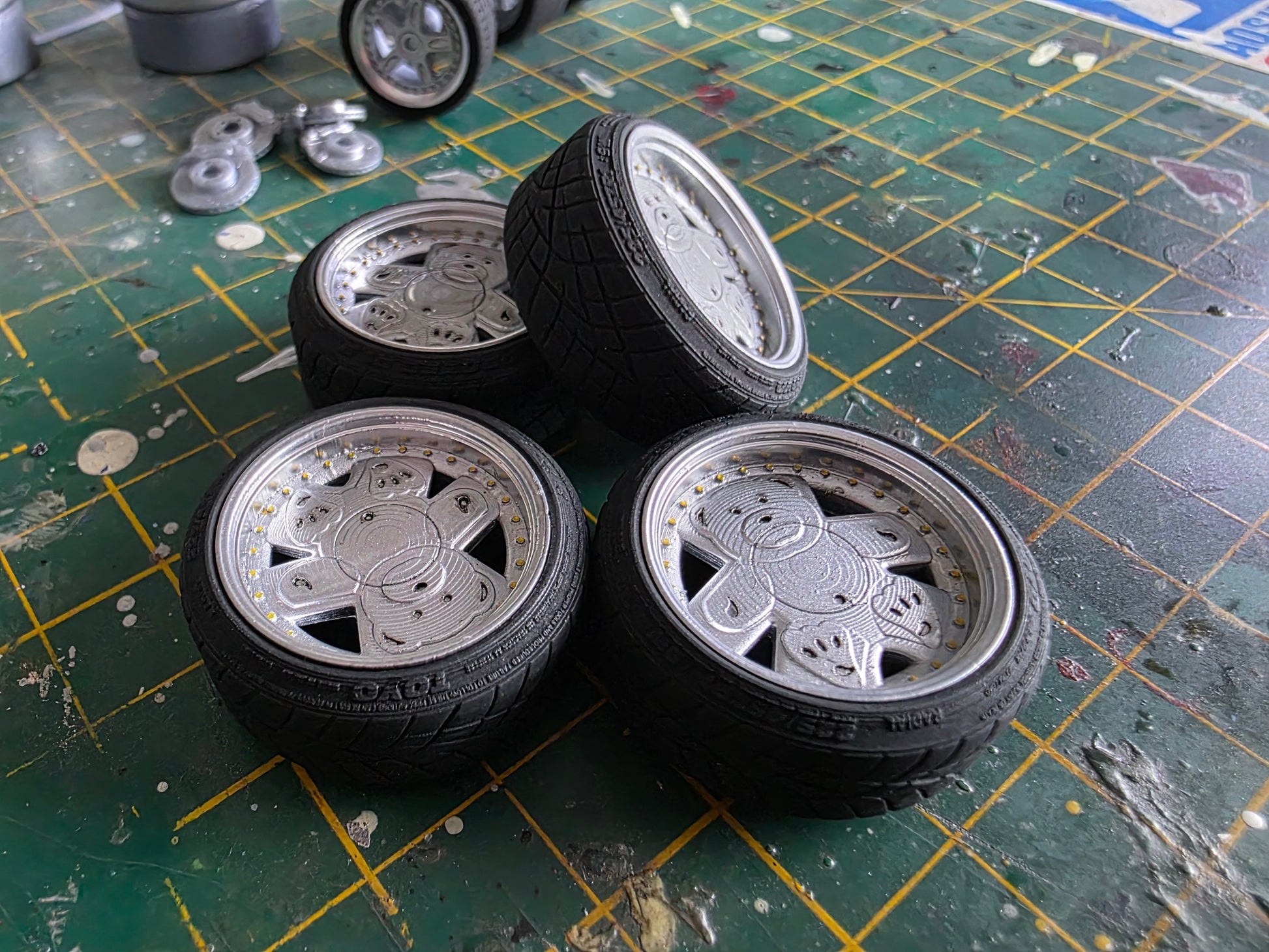 1/18 scale Ronal Teddy Painted in Silver with chrome barrel with Stretched Toyo Tyres