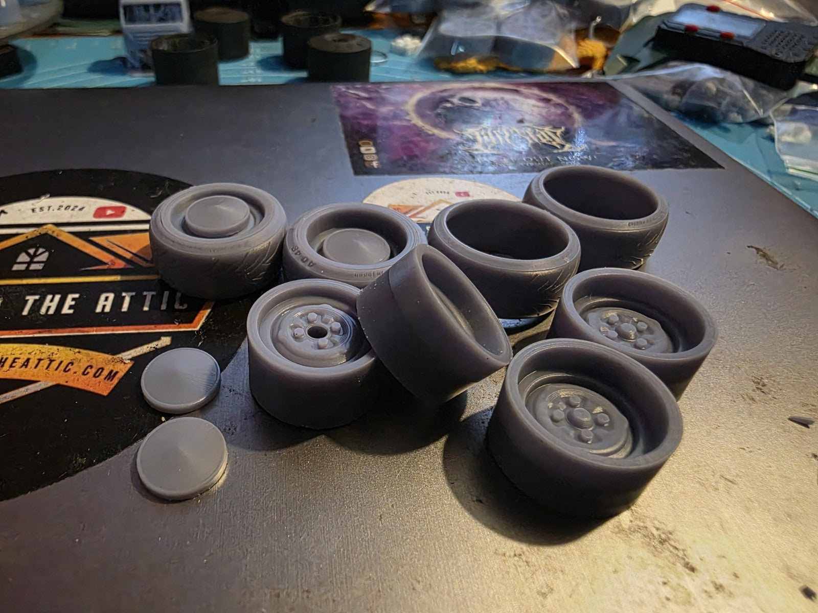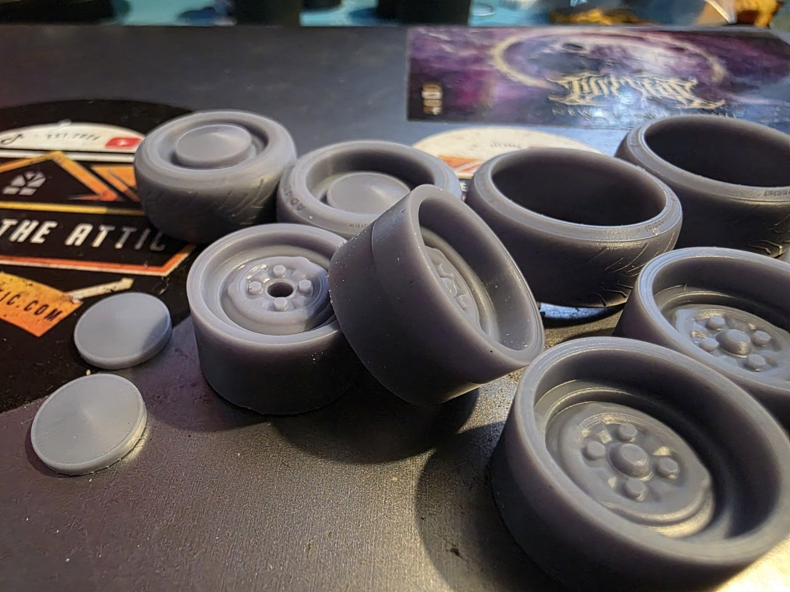Comes with 4 deep dish wheels, two standard dish wheels and 4 resin printed tyres to mix and match what you require